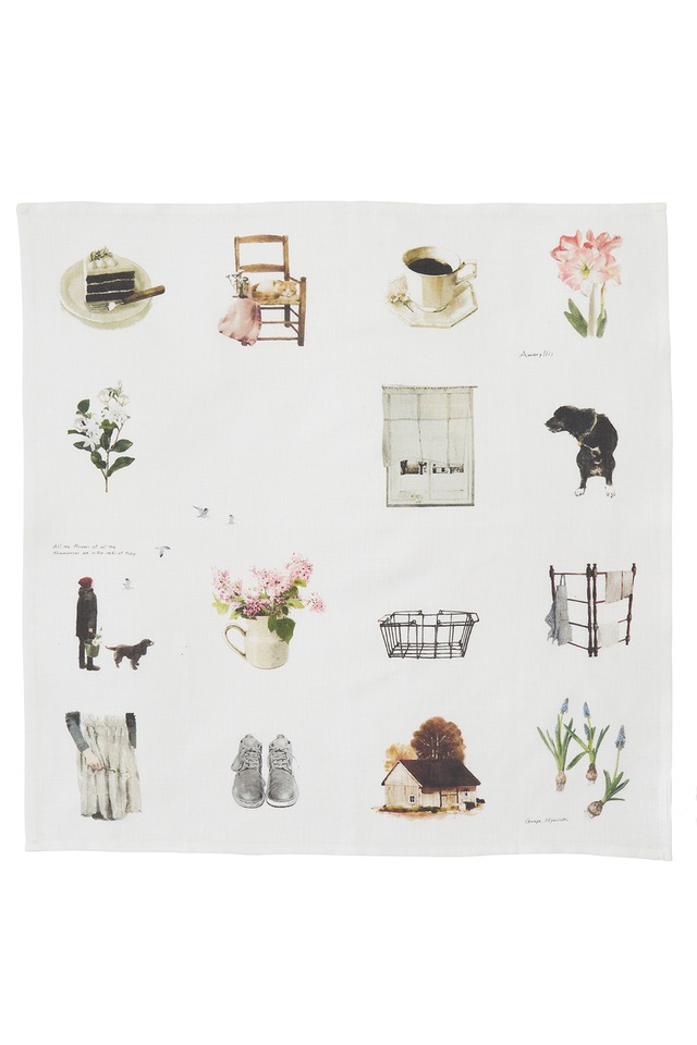 イラストレーター 荻原美里さんの描くイラストをリネン生地にプリントしたシリーズです。 花や動物たちとの素敵な暮らしの一コマが印象的です。 なにか大切なものを包んでおきたくなるような 、クローゼット中に見つけるたびに嬉しくなるような特別なハンカチが出来上がりました。 ハンカチとしてはもちろんのこと、お弁当包みや壁に飾っても。プレゼントにもおすすめのアイテムです。 荻原 美里 東京と山梨の2拠点で生活。多摩美術大学でデザインを学び、その後オペラ、コンサート等の背景画、店舗デザインを担当・制作、デザイナー、イラストレーター、美術家として活躍中。 ・サイズ:W 45 × L 45 cm ・素材:linen 100% (薄地/sheer) ・生産国: Lithuania(リトアニア) ー注意事項ー ※商品画像は、光の当たり具合やブラウザにより、実際の色味と異なって見える場合がございます。