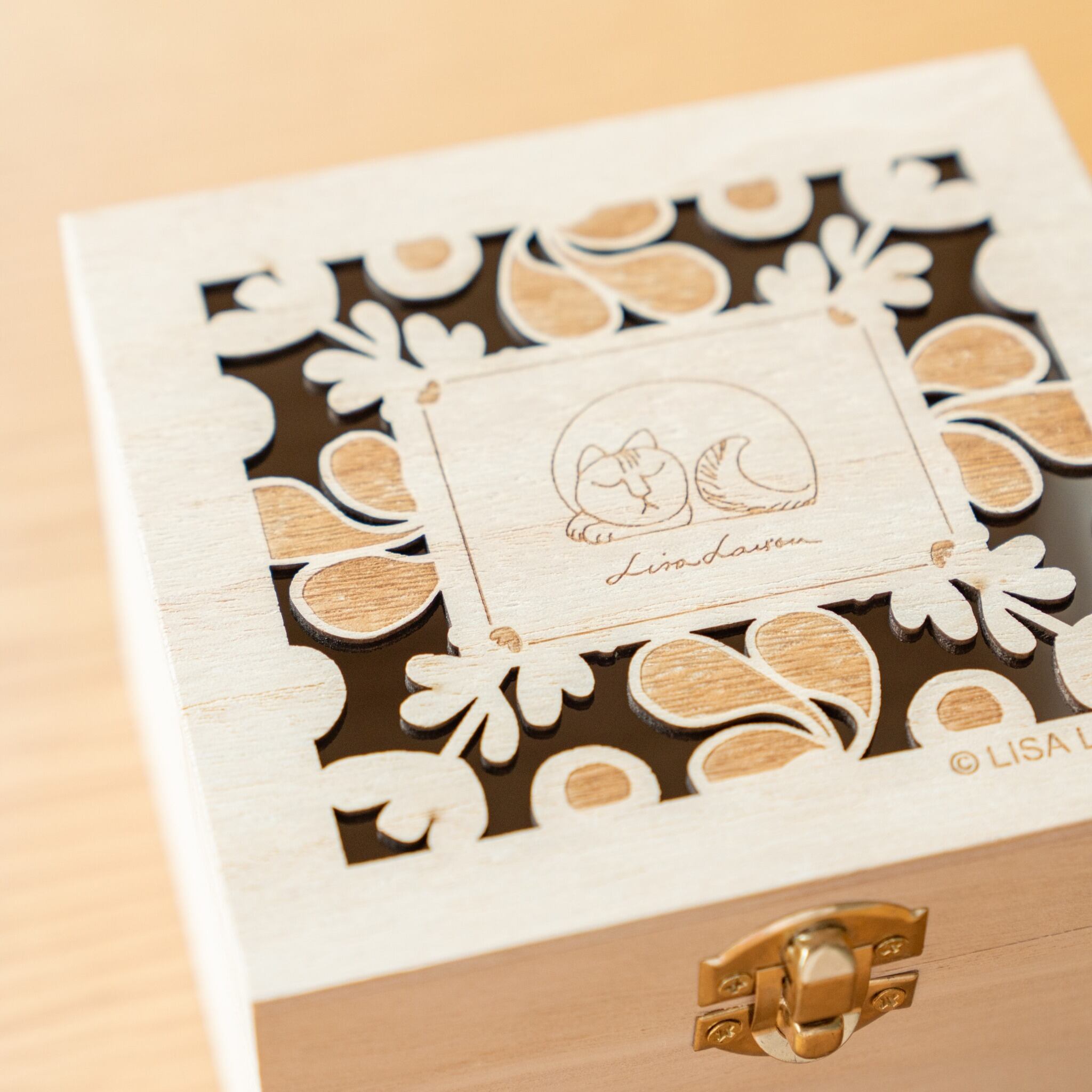 猫のSussy(スッシー)と植物模様が型掘りされた豪華な木箱入りで贈り物にもおすすめです。