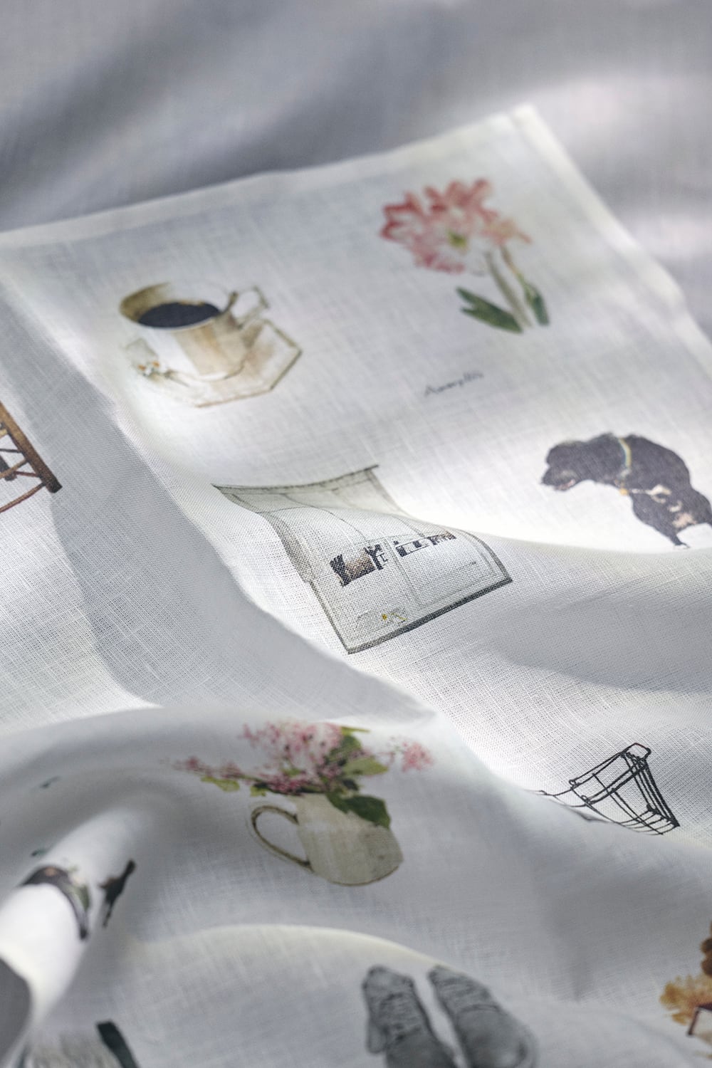 イラストレーター 荻原美里さんの描くイラストをリネン生地にプリントしたシリーズです。