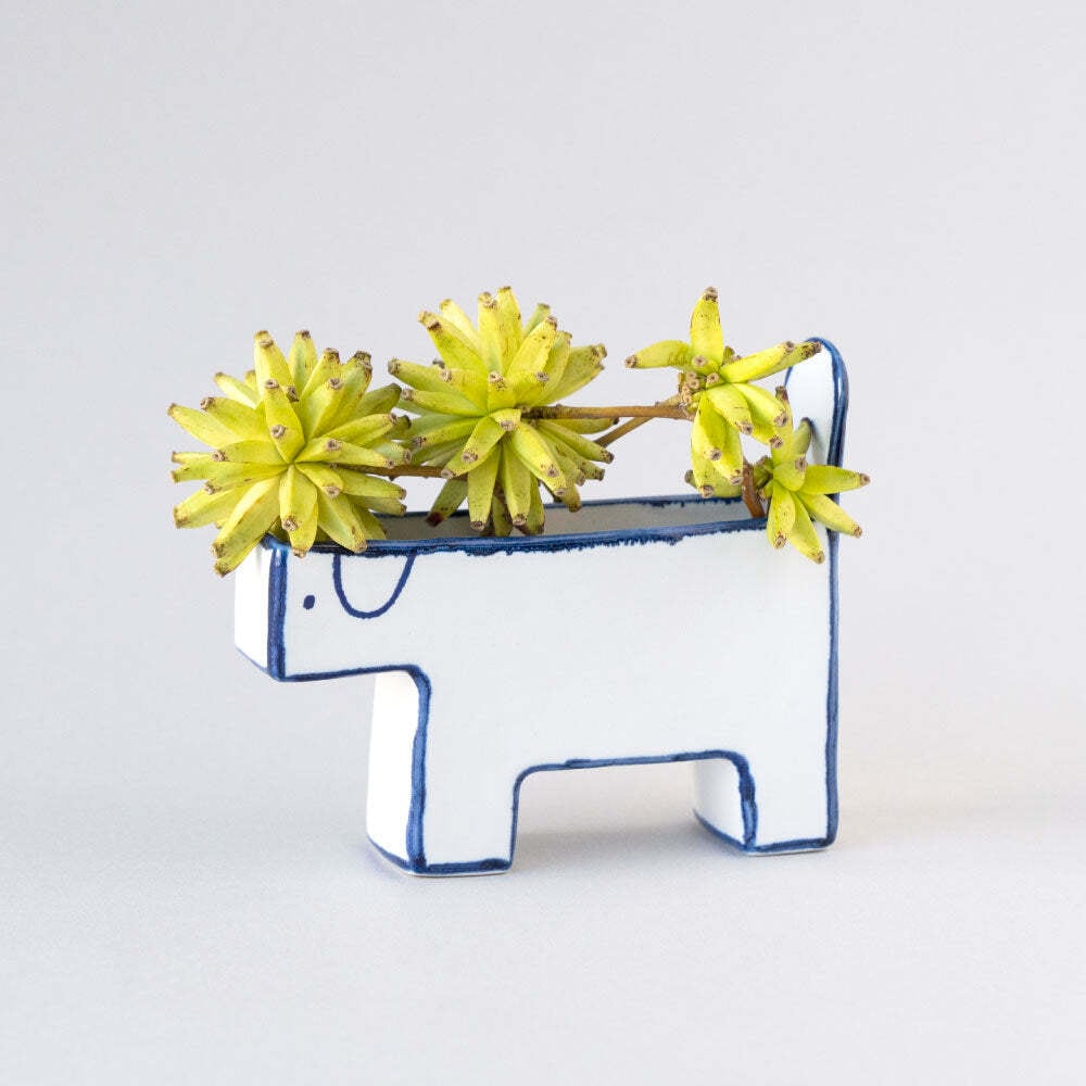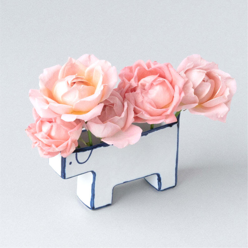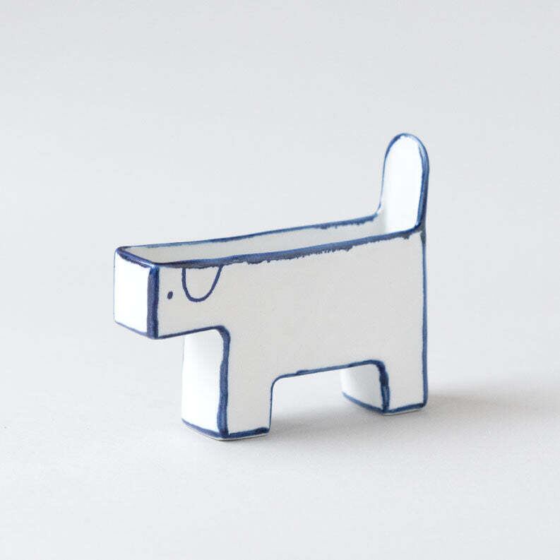 そこで、㈱トンカチとマリアンヌがオリジナルのよさを極力残したうえでの量産化を模索し、出会ったのが、大正時代から続く愛知県瀬戸焼の窯元。こちらは、マリアンヌの人気作「犬のかびん」の瀬戸焼ヴァージョン「犬のかびん(seto)」です。