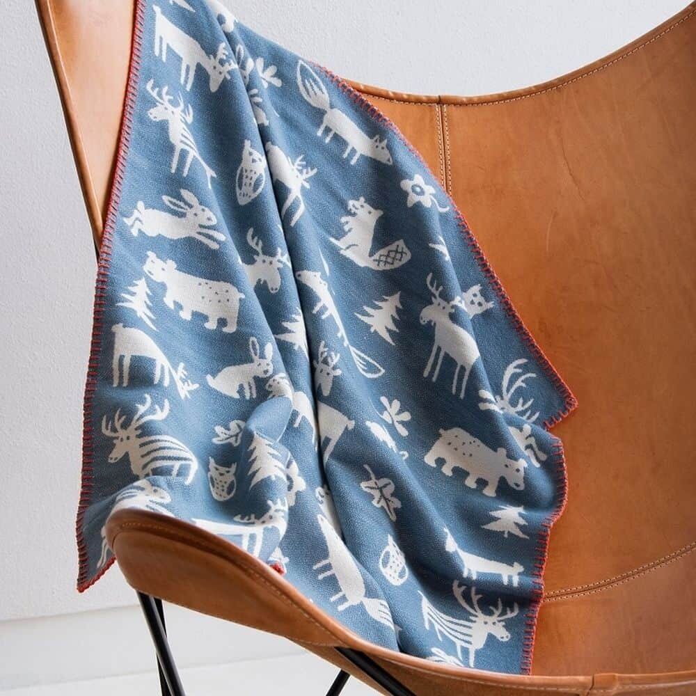 1879年創業、スウェーデンの老舗テキスタイルメーカー〝KLIPPAN/クリッパン〟より、 ベングト&ロッタとのコラボレーションデザインのミニブランケットです。