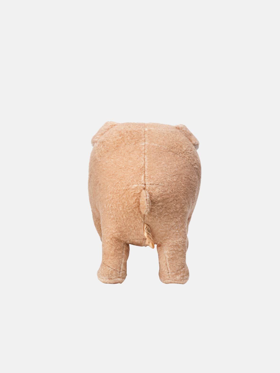 ふっくらとした体と後ろをむいたお尻の丸みが可愛らしい。4本足で自立するので、ぬいぐるみとしてだけでなくインテリアとしても活躍しそう。