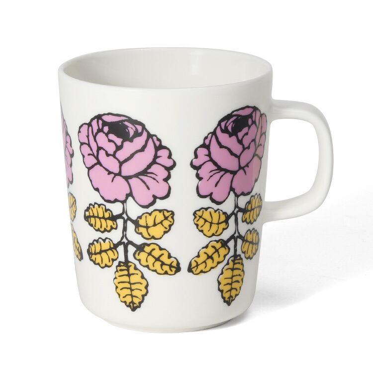 ノスタルジックな雰囲気の花柄が、テーブルに彩りを添える「Vihkiruusu(ヴィヒキルース)」のマグカップ。北欧を代表するテキスタイルブランドmarimekko(マリメッコ)の中でも人気の「Vihkiruusu(ヴィヒキルース/ウェディングローズ)」柄。Vihkiruusuは、マイヤ・イソラが1964年にデザインした「maalaisruusu(マーライスルース)-田舎の薔薇」を娘のクリスティーナ・イソラがスモールパターンにリデザインしたもの。