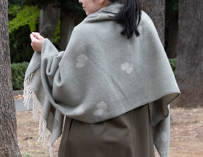 お出かけの時、ショールのように羽織ったり、マフラーとして首周りに巻き付けたりと、また自宅やオフィスでひざ掛けやカーディガン代わりに使ってもよいです。