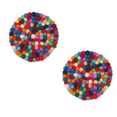 一つ一つたっぷりのピュアウールをぎゅっと丸めて作られたフェルトボールを組み合わせたコースター(2枚組)。耐熱、耐久性に優れ、使いやすさを追求したデザインです。